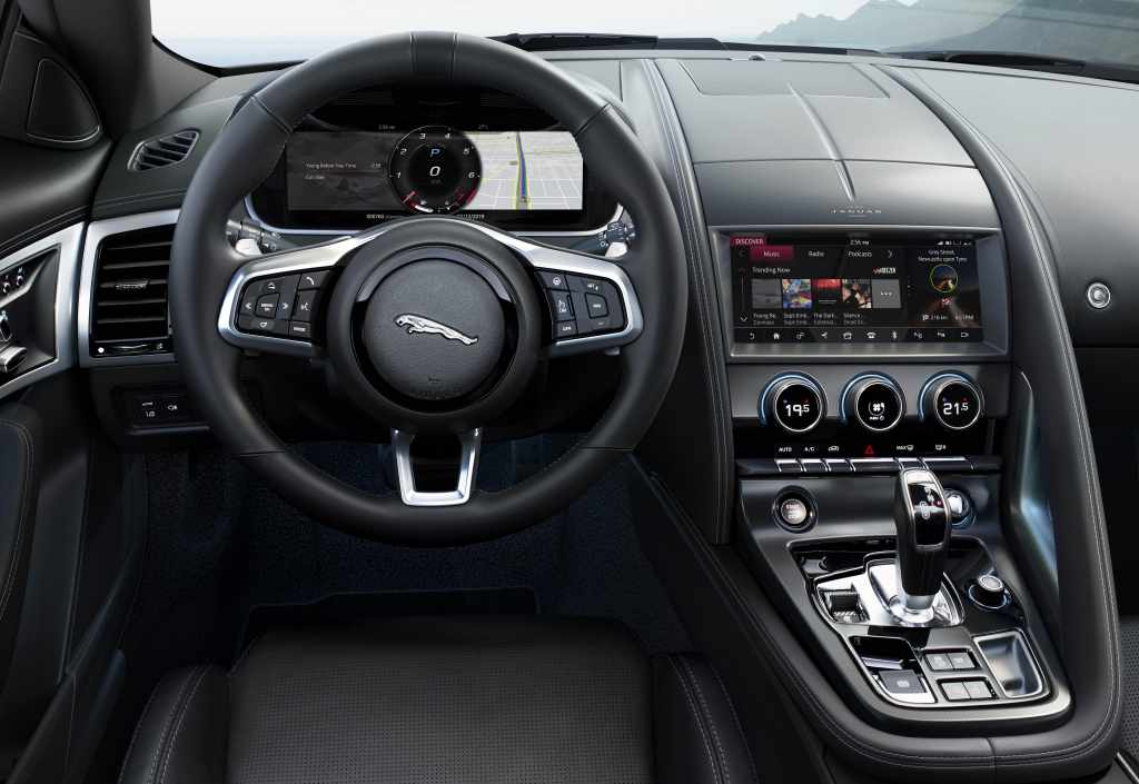بالنسبة للتصميم الداخلي لم تحصل F-Type الجديدة علي الكثير من التغيرات في التصميم العام , والذي يعد واحد من افضل التصاميم الداخلية , حيث حصلت علي مقاعدة جديدة خفيفة الوزن بتطريز MONOGRAM مميز , و لوحة عدادات رقمية متطورة قياس 12.3 بوصة , والتي تحتوي علي الكثير من المزايا الجديدة , و نظام معلوماتي بشاشة 10 بوصة تعمل باللمس و مزودة بـ Apple Car Play و Android Auto , و الذي سيحصل علي تحديثات عن بعد مثل سيارات تسلا الكهربائية .